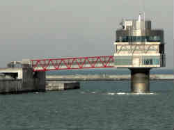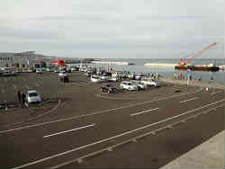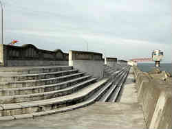 右は紋別港で見たサケ釣りの風景です。目の前で50cm程度のサケが実際に釣れていきます。ちょうど我々がハネやスズキを釣る感覚で釣っています。左はオホーツクタワーの入り口です。ここもガラガラの状態です。ここまでは遠い距離にありますので無料の電気自動車の送迎をお願いして乗車です。 | ![]() |