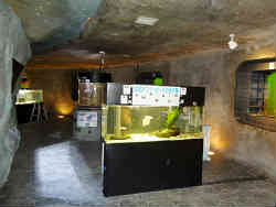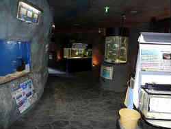 ぐるりと360度地下を回ります。外側には窓が並び内側と中央には小さな水槽が並んでいます。ケムシカジカやアイナメ・オオカミウオなどがいます。 | ![]() |