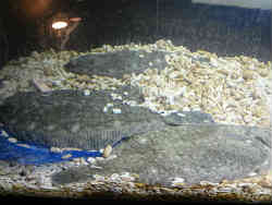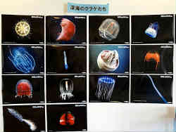 右は大きなカレイがいます。左は世界のクラゲの写真と説明文です。 | ![]() |
