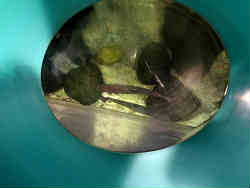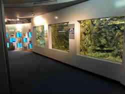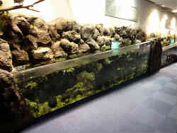 右は川の感じを再現した水槽でだんだんと上流から下流へと変化していきます。その中には水中を覗けるタコめがねなる物(緑色)が置いてあり自由に覗けます。左はその中の水中のシーンを撮影しました。 | ![]() |