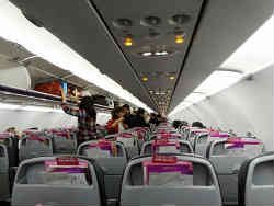 最後に見終えてレンタカーを返却し復路のピーチ機内です。3人掛けシート×左右×30列の合計180名乗員の小さな機体です。1〜2時間のフライトでは問題ありません。これからもこのピーチを使ってアチコチ行こうと考えています。来月は成田空港へ片道4500円を予約し東関東の水族館巡りをする予定です。 | ![]() |