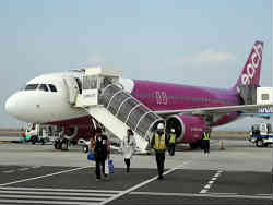 | 今回もたった1カ所の水族館を巡るためだけにLCCのピーチを利用しました。写真撮影は関空の降り立ったときのもの。何とキャンペーン価格でフライト料は関空から成田まで片道2000円(それ以外に空港利用料は350円掛かる)という破格値(帰りも同額)だからです。今後も超安値で乗り続けます。次回は仙台の予定です。 | ![]() |