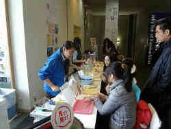 | 右はあの中国の団体客がわんさと訪れて体験をしている「アコヤ貝」の真珠の取り出しです。1回500円であと取り出した真珠の加工も別料金でやってもらえます。もちろん日本人も参加できます。係員は中国語も話できる方がいるみたいです。 | ![]() |