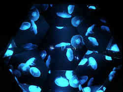 右はクラゲを飼育しているラボみたいな場所でその他のクラゲもここで展示しています。左は6角の万華鏡のような水槽です。優雅なクラゲがより美しく表現されています。 | ![]() |