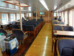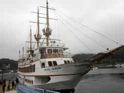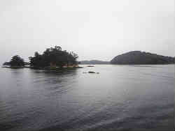 50分の観覧で1200円です。松島の時と同じように大小さまざまな島が有り、途中大きな入り江の中で180度船の方向を転換する場面がありました。ここは結構真珠の養殖をしているらしく専用のブイが見えています。船内の施設も良く、食堂席(外に向かって見える位置にテーブルが配置されている)でビールとおつまみを頂きました。 | ![]() |
