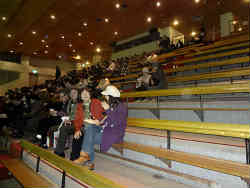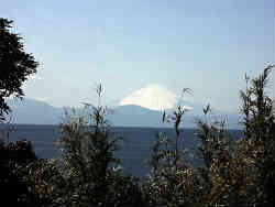 そしてこのショーはクライマックスへと進んでいきます。左は2頭同時に高さ約2mほどの棒を越えていきます。全体的な印象としてはイルカのジャンプ等は種類も量も少なく、アシカの芸の方がメインと言った感じでした。外に出ると遙か遠くには雪化粧の富士山が見えます。 | ![]() |