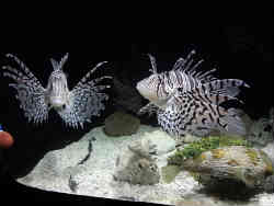 ミノカサゴです。下は360度円形の水槽でシマアジ・カンパチ・ブリ等が回遊しています。その他ヘダイ・クロダイ・エイ・サメと種類と匹数は多いです。 | |