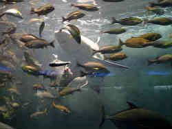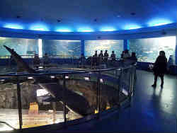 右はコウイカ(スミイカ)の水槽です。全般的には魚の種類が少なく大きな水槽も下記円形水槽ぐらいですね。 | ![]() |