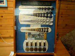宍道湖の塩分濃度の紹介があります。海水は3.4%で中海(海に近い方の湖)は1.6%、みそ汁は1%です。そして宍道湖は0.3%らしいです。宍道湖はシジミで有名ですね。ここのシジミは一時期かなりの漁獲量を誇っていましたが、今では激減しているそうです。左はシジミの大きさを年数で表して並べた物ですが、真ん中辺の大きさで約4年程度です。よってかなり大きくなるのには年数がかかるみたいです。 | ![]() |