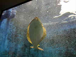 | ヒラメですが本来砂の中に生息しています。この時は活発に泳ぎ回っていますので撮りました。盛んに2m以上も上に泳いでいます。意外にも結構泳ぎ回るんですね。 | ![]() |