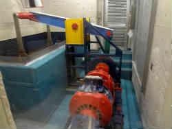 まあ全体的では施設の中や展示方法等最新の館で好感が持てます。左は水槽に波を送る装置でガラス越しに見えます。大水槽造波装置です。水槽では一定方向に波や酸素を送って海流を発生させています。そうすることで魚は波に逆らって一定の方向に泳ごうとします。 | ![]() |