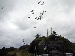 最近テレビで紹介されている奇跡の水族館です。市立ですが古い水族館の時は老朽化して客の入りも悪く廃館寸前まで追い込まれ思案している時、クラゲに魅了されている客が多いのに気づき新しいクラゲを中心とした水族館を新築しました。個人的にクラゲの展示はどのような作りになっているのだろうと訪問前から興味はありました。 入ってすぐに海鳥のエサやりのショーがあるので寒い屋外に出ました。スタッフが鐘を鳴らし自然界(居着き)の海鳥をおびき寄せ小アジをあげるというものです。強風の中垂直にエサを放り投げるとパクと食いつきます。我々見学者にも試すことが出来ます。私も参加しうまくあげることが出来ました。 |