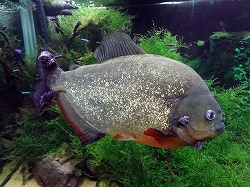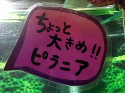 唯一魚の名前が表示してるのがピラニアである。芸術的な要素が大きいのでさすが水質や水槽等は非常にきれいであるが、魚の生態等影響を与える配慮も無関係だと思われる。 |