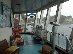 他の客も大変興奮して声を出して喜んでいます。私にとっては普通の感覚ですが、やはり一般の方にとっては珍しい光景だと思いますね。入口階には大きくまわりに展望ができ、有料双眼鏡等も有り休憩室となっています。当日はガラガラで他の客はほとんど居ませんでした。 |