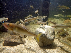 | 最近オープンしたビル型の淡水魚水族館です。最新すぎて展示物の説明はすべてQRコードでスマホがないと表示出来ない仕組みです。また都市型のビルというのか、とても入口がわかりにくく、地方から来た人にとっては案内表示は不親切でした。新しいのですが規模の割には料金は高いと感じました。よって以下写真のみです。 | |
