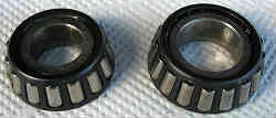 ベアリングについて: ベアリングは内側(インナー)と外側(アウター)2個付いています。ベアリングは外側(アウター)は直径が小さく・内側(インナー)は大きいのが付いています。当然新品を注文する場合は大きさを確認して、2種×2個の計4個同時に交換すること。 右写真の右がインナー・左がアウター | ![]() |