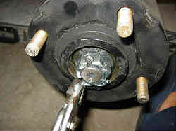 割ピンとナットの取り外し: キャップを外すと割ピンが貫通した切り欠きのあるナット(クラウンナット)が見えます。この割ピンをプライヤーで真っ直ぐに整形し抜き取ります。 組み立て後割ピンを差し込む場合は必ず同じサイズの新品を使用すること。 なお写真で見えているタイヤを固定する4本のボルトには油脂類は付けないようにすること。しかし賛否両論有りで、難しいですが以下の通りだと思います。 油脂類を付けると簡単に締まりまた簡単に外れる可能性があります。しかし油脂類を付けることで我々海岸にトレーラを置く(当然浸ける方は)者にとっては、塩害によるホイールナットがガチガチにこびり付き外れないという事に対するトラブルには対処できると思われます。よって薄くボルトのねじ切り部(ナットとホイール部の接触面は避けて)に錆びさせないよう(固着させない)に塗るのは良いと思われます。 | ![]() |