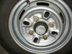 タイヤの取り付けについて: タイヤの穴にボルトを入れ押さえつけながらナット(表裏があり細くなっている方が奥)全部を最後まで手で回します。その後タイヤレンチを使って締め付けますが、その時対角線に少しずつ締めていきます。例えば4カ所ナットがあれば(外周辺順番にA→B→C→Dとすると)、Aを少し締めてCを少し締め、次にBを軽く締め、次にDを軽く締めと言う風に順番に対角線上のナットを少しずつ締め付け最後は目一杯締めます(しかしほどほどに)。最近トルクレンチという物(タイヤを値通りに締め付けるレンチ)が安価(数千円程度)で販売されています。これを使用すると、間違いなく締め付けられます(ただし信用ある商品)。是非お試しあれ。 | ![]() |